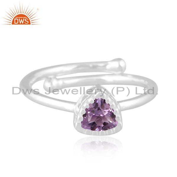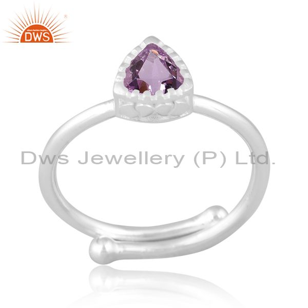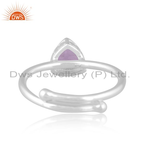 Fine 925 Silver Triangular Pink Amethyst Set Statement Ring