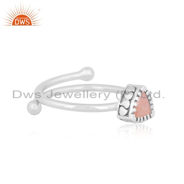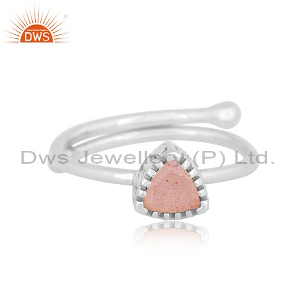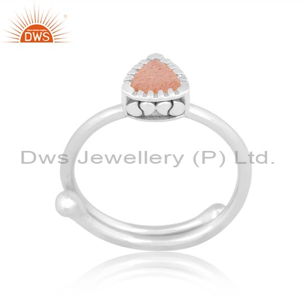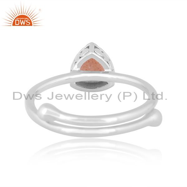 Fine 925 Sterling Silver Triangular Peach Moonstone Set Ring