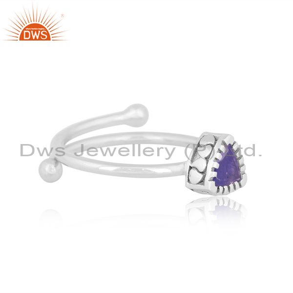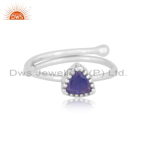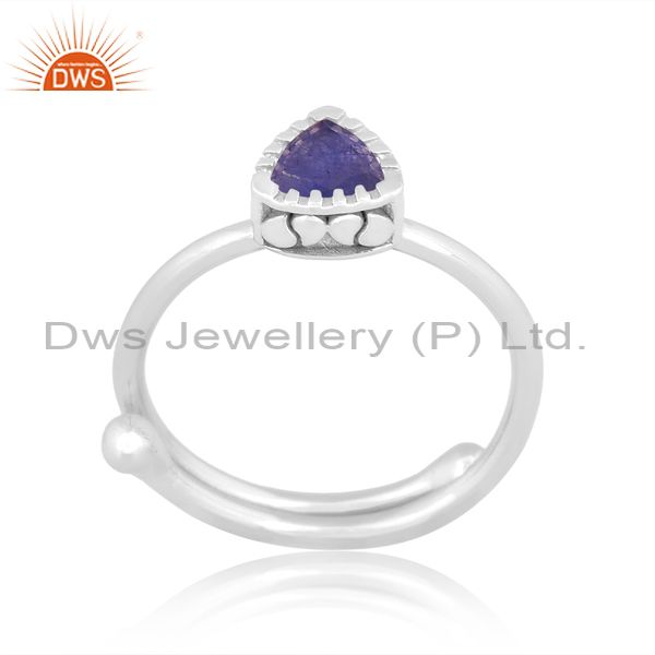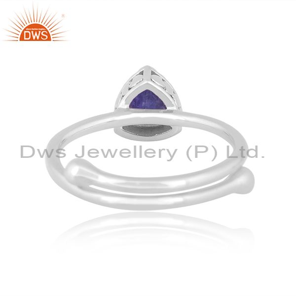Fine 925 Sterling Silver Triangular Tanzanite Set Fancy Ring