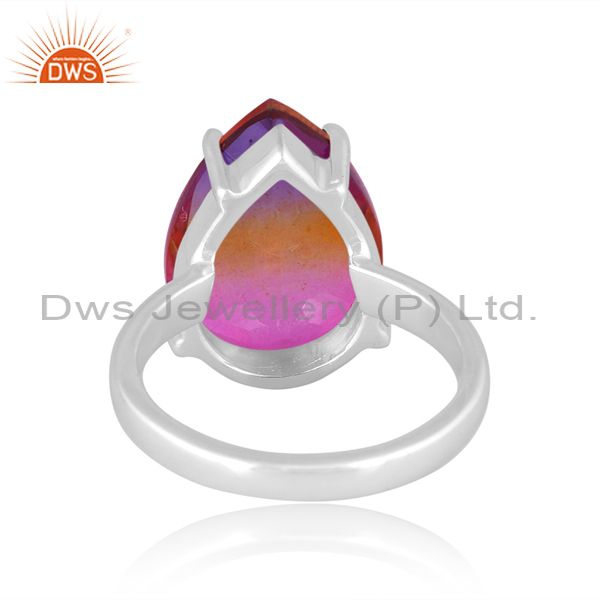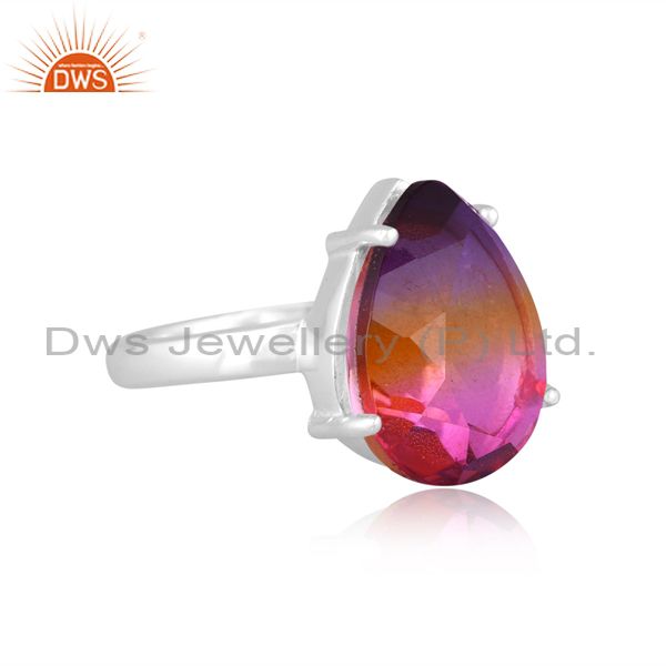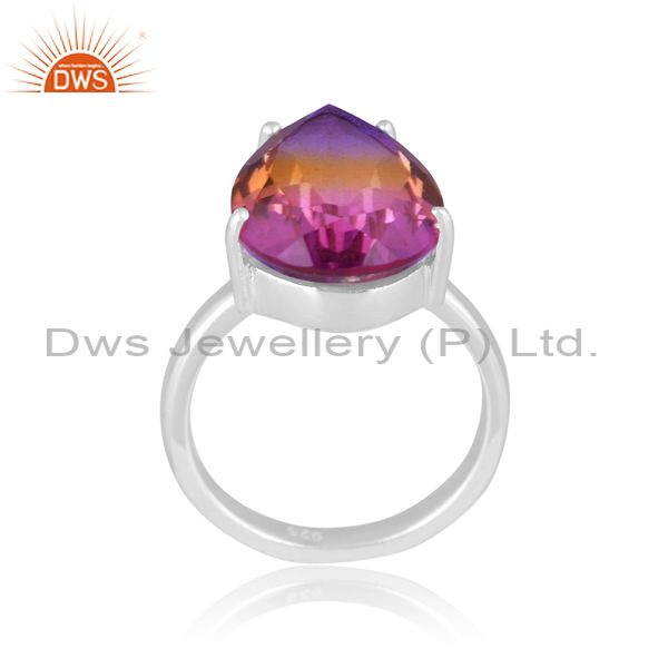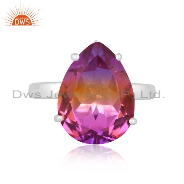 Fine Silver Pear Cut Bio Ametrine Doublet Quartz Set Ring