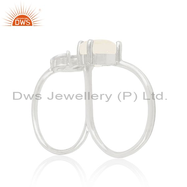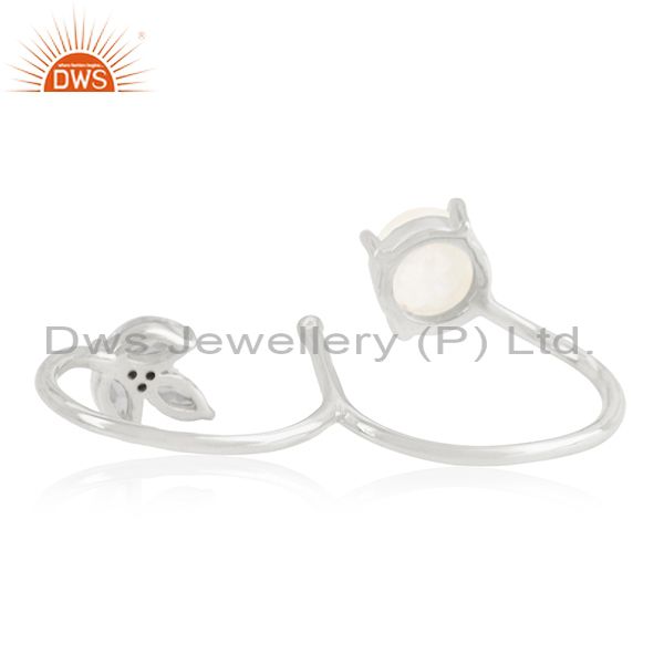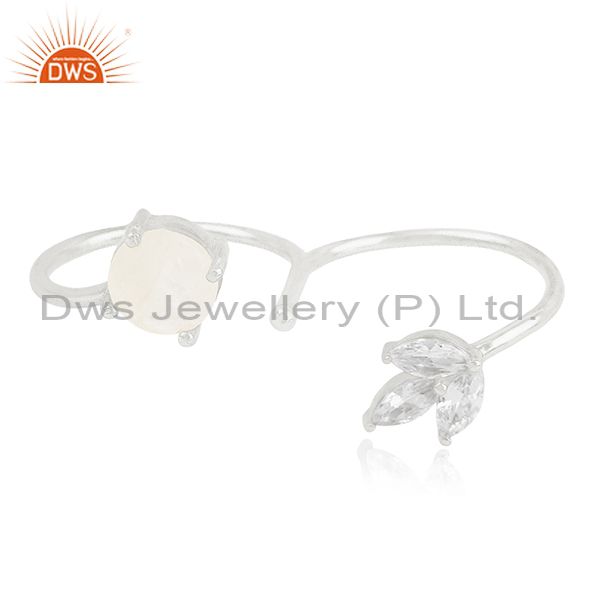 Fine Silver Plated Brass White Zircon and Moonstone Double Finger Ring Supplier