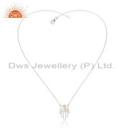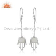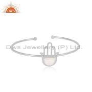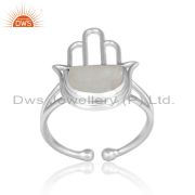 Fine Silver Rainbow Moon Stone Hamsa Designer Ring