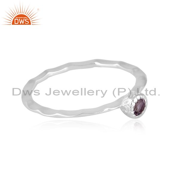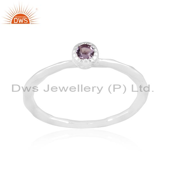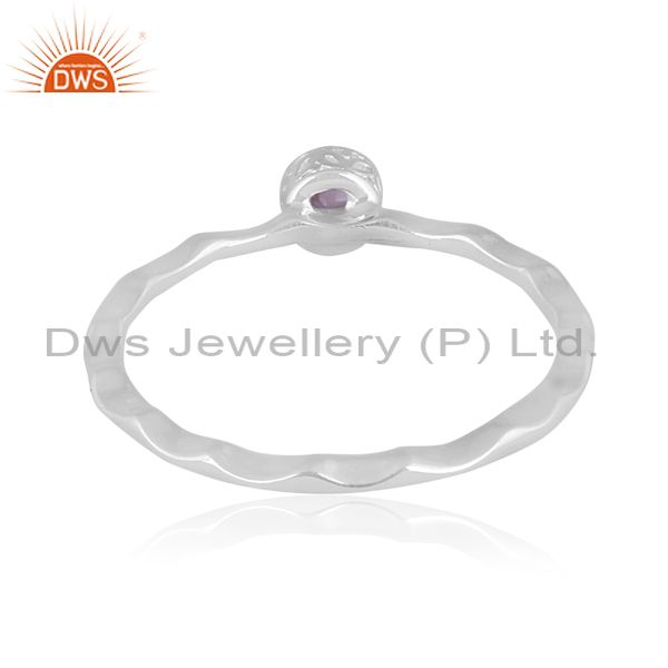 Fine Silver Round Cut Pink Amethyst Set Handhammered Ring