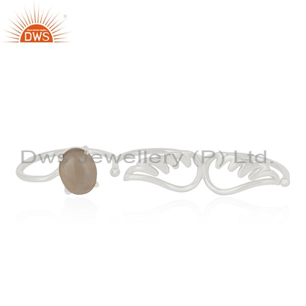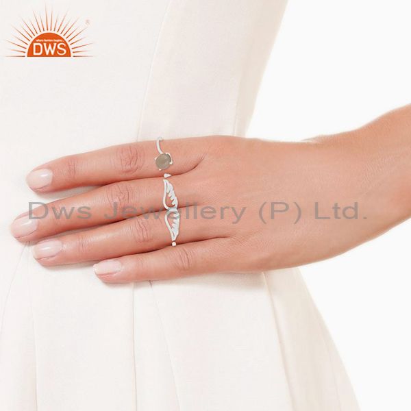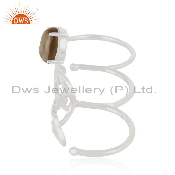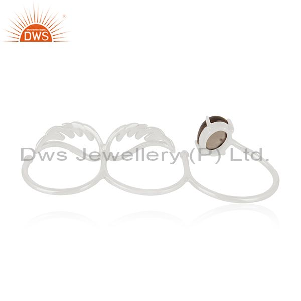 Fine Silver Smoky Quartz Angel Wing Three Finger Ring Manufacturer of Jewelry
