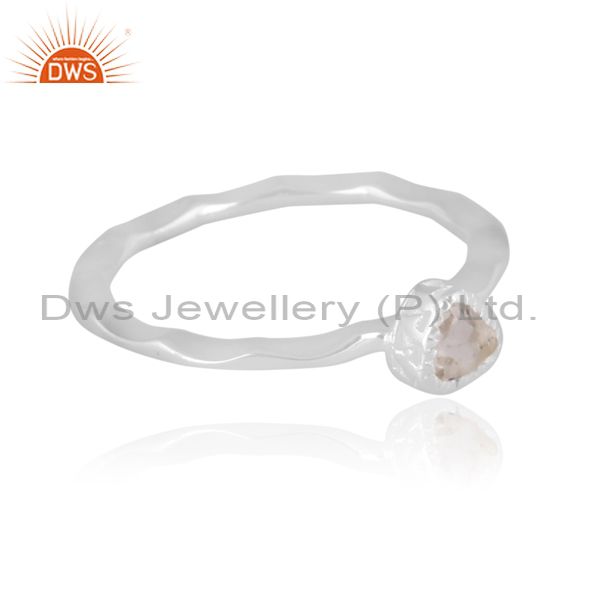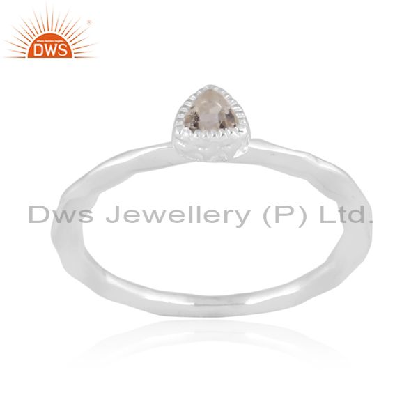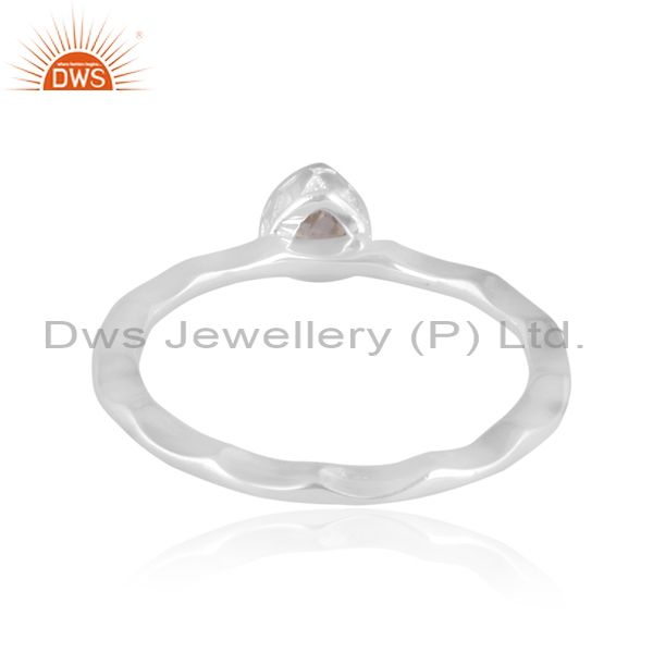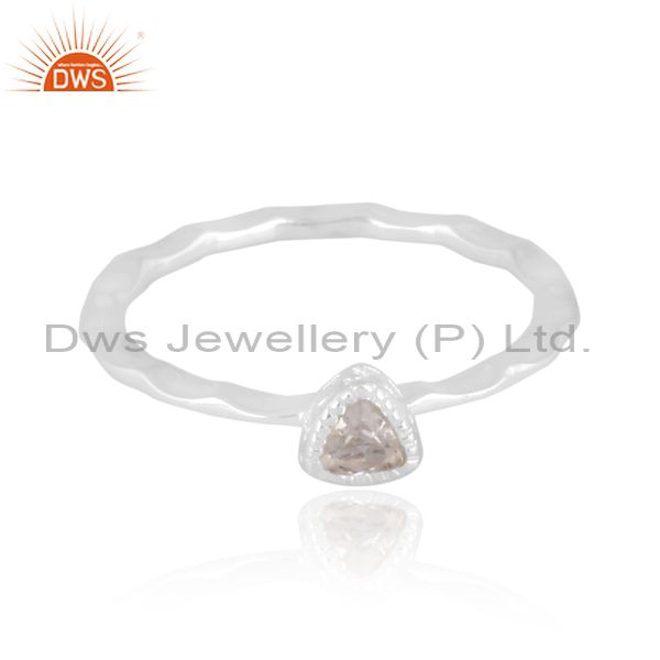 Fine Silver Triangle Cut Crystal Quartz Handhammered Ring