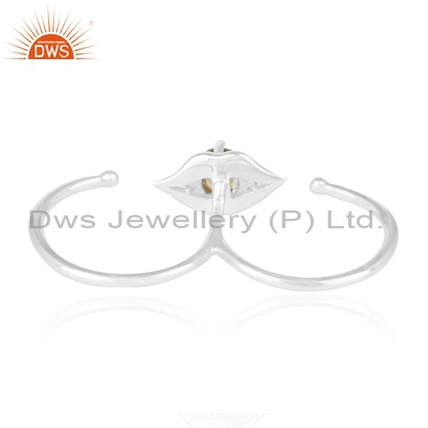 Fine Sterling Silver Citrine Gemstone Lip Design Double Finger Ring Manufacturer