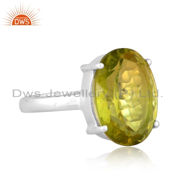 Fine Sterling Silver Doublet Peridot Quartz Set Design Ring