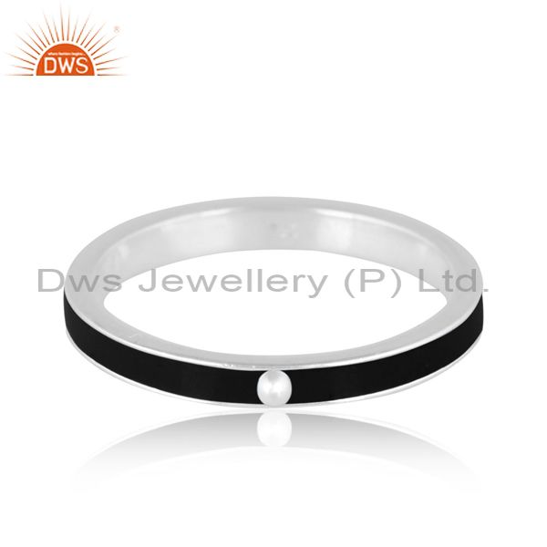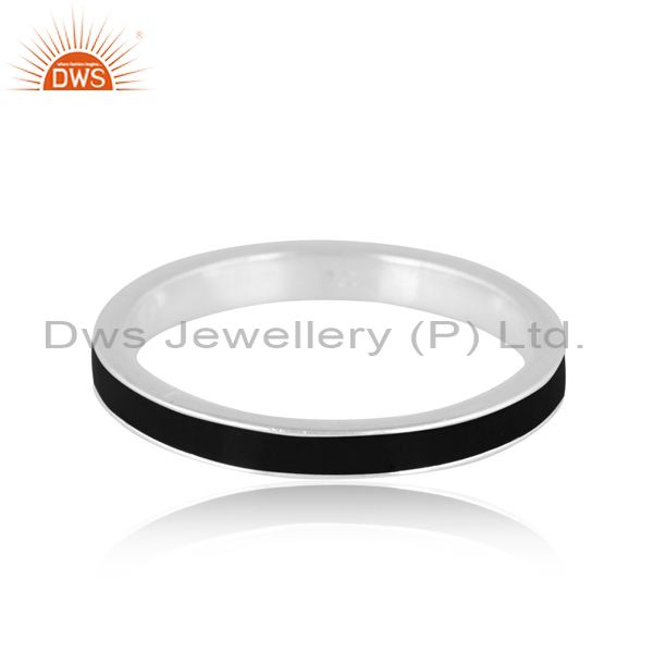 Fine Sterling Silver Handmade Black Enamel Band Style Ring