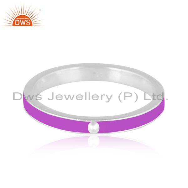 Fine Sterling Silver Handmade Purple Enamel Band Style Ring