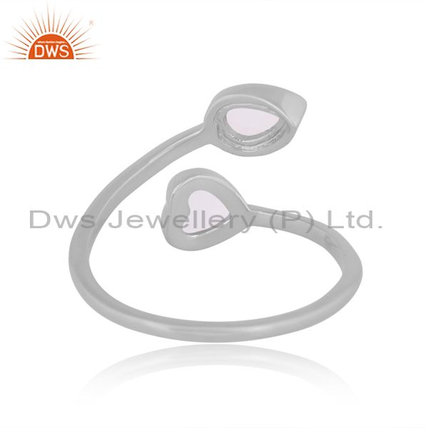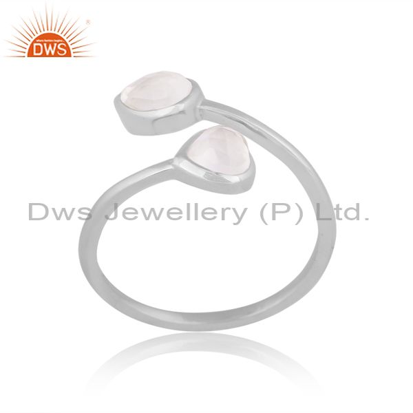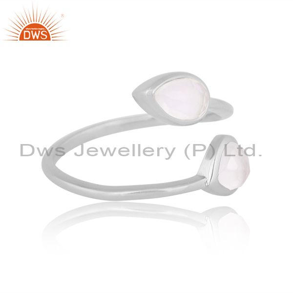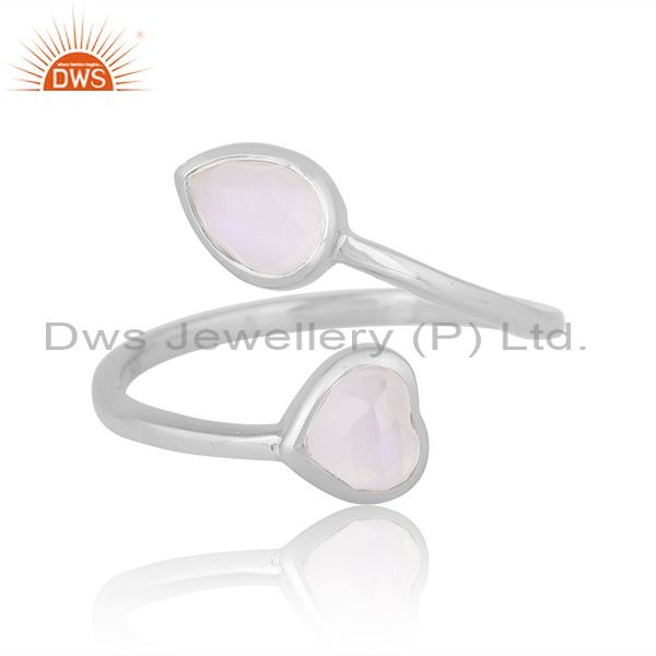 Fine Sterling Silver Rainbow Moon Stone Set Open Twist Ring