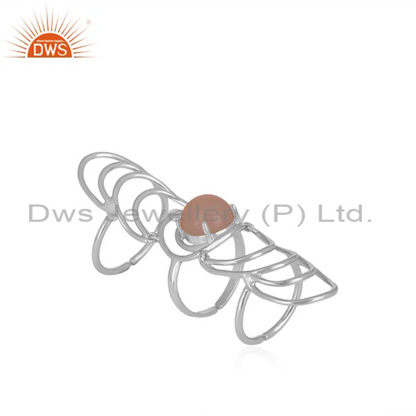 Fine Sterling Silver Rose Chalcedony Gemstone Knuckle Ring Supplier