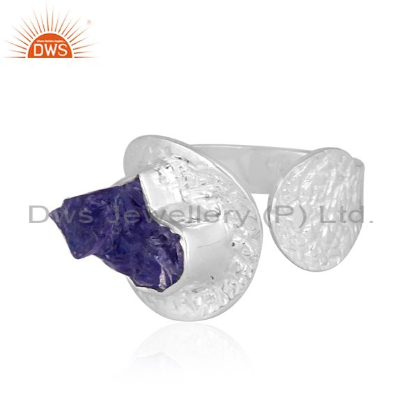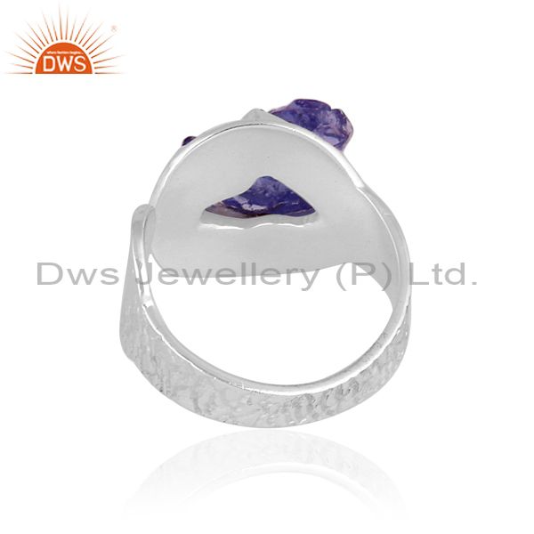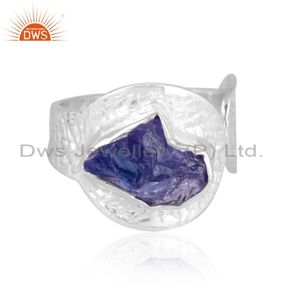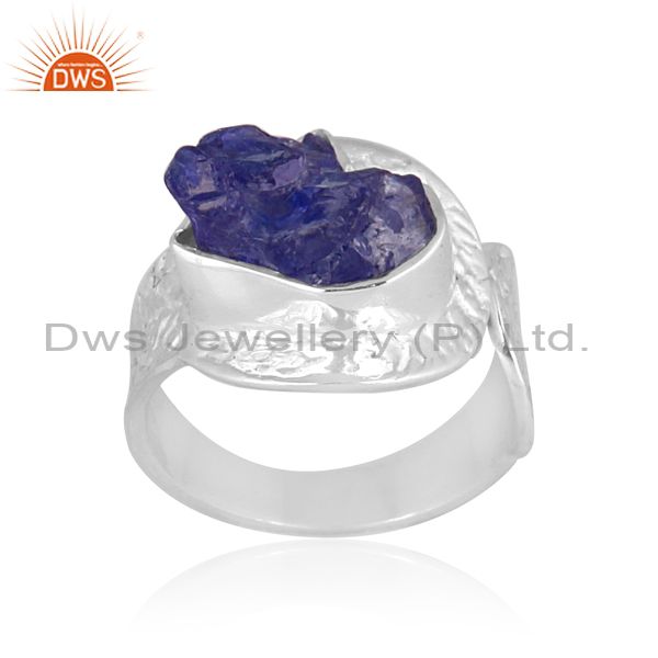 Fine Sterling Silver Rough Cut Tanzanite Set Statement Ring