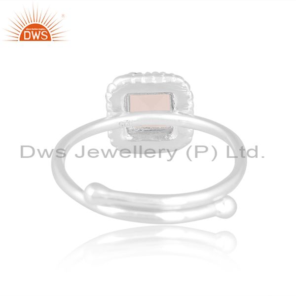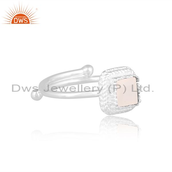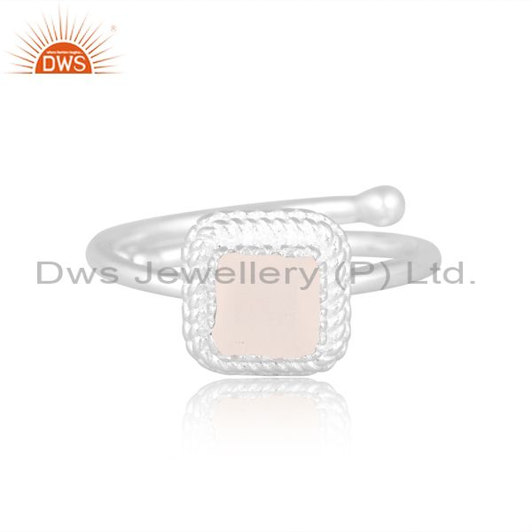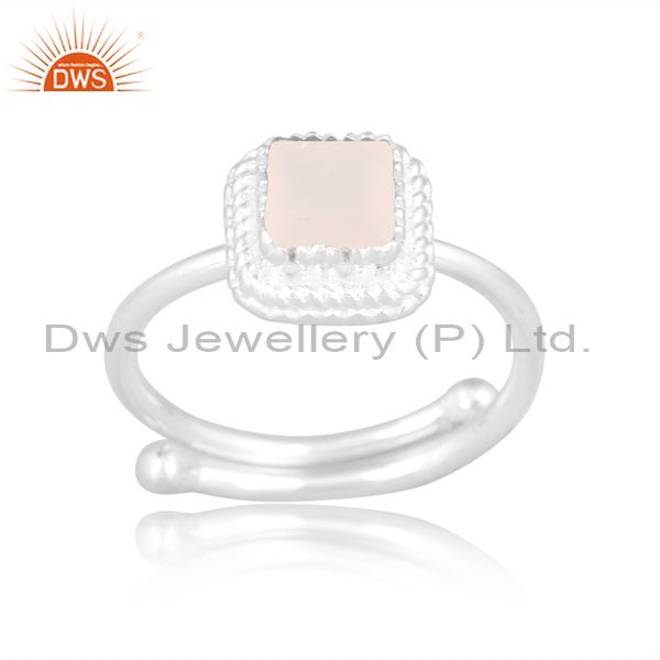 Fine Sterling Silver Square Cut White Moon Stone Set Ring