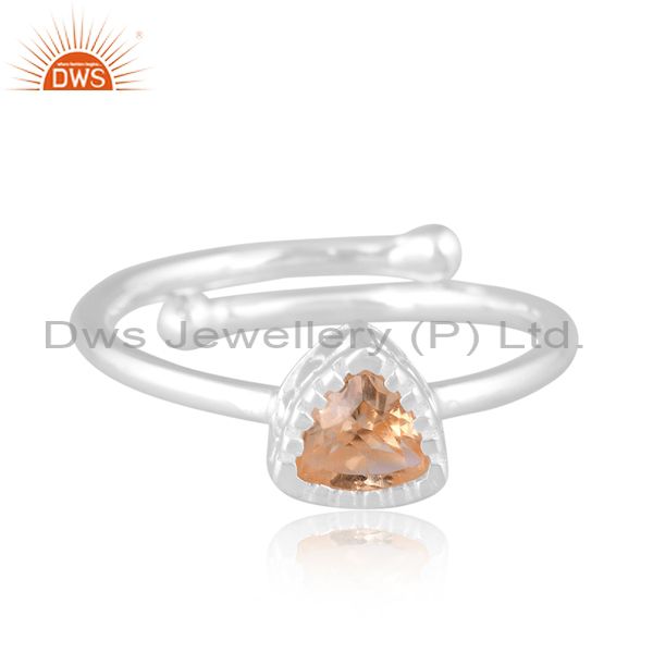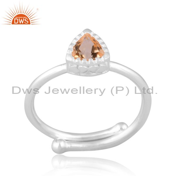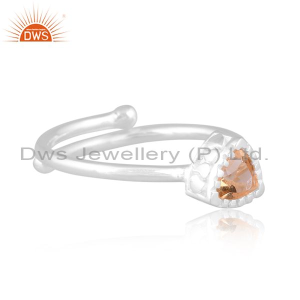 Fine Sterling Silver Triangular Citrine Set Statement Ring