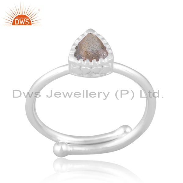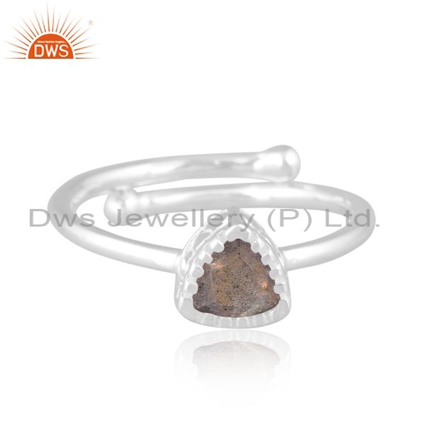 Fine Sterling Silver Triangular Labradorite Set Classy Ring