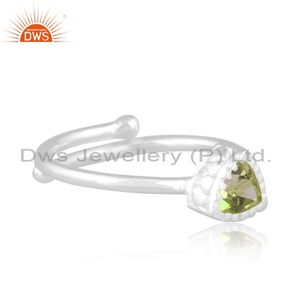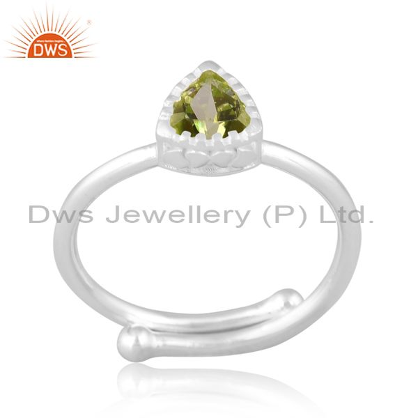 Fine Sterling Silver Triangular Peridot Set Statement Ring