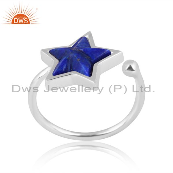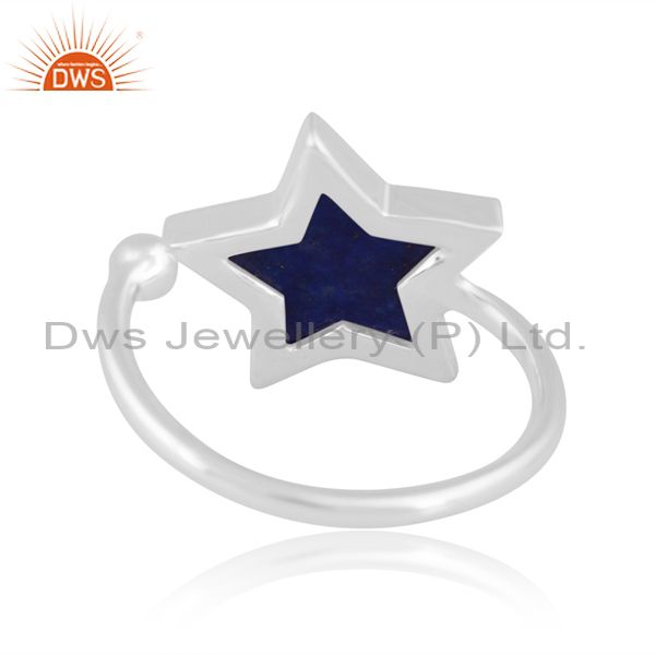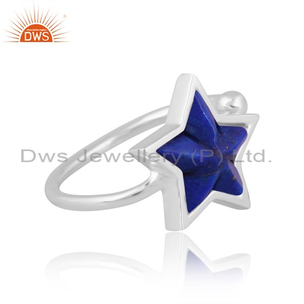 Finely Crafted Lapis Plain Star On White Silver Ring