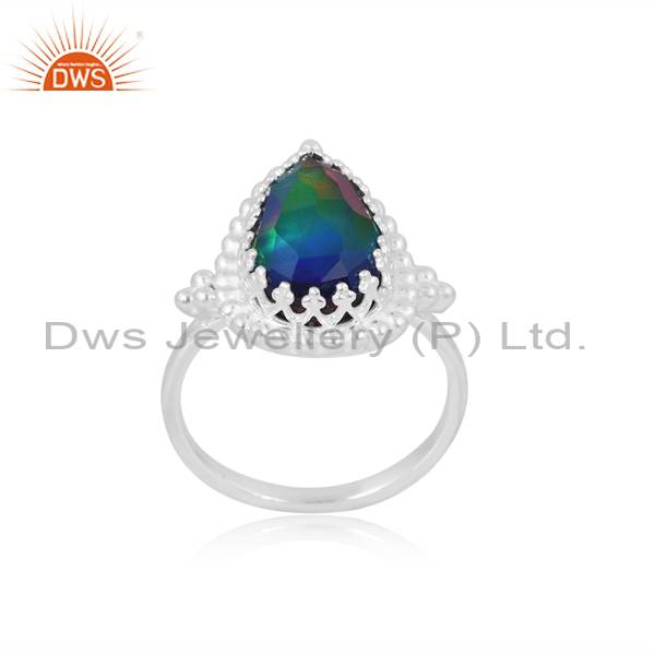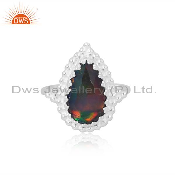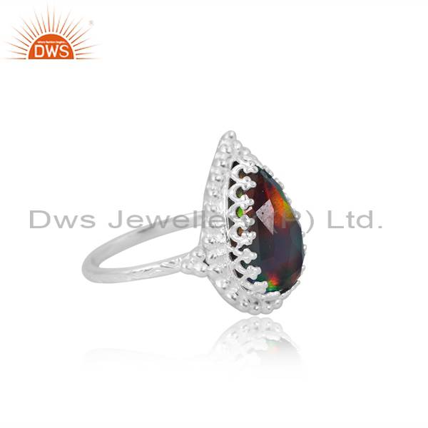 Finger Ring With Pear Cut Aurora Opal Red Green For Girls