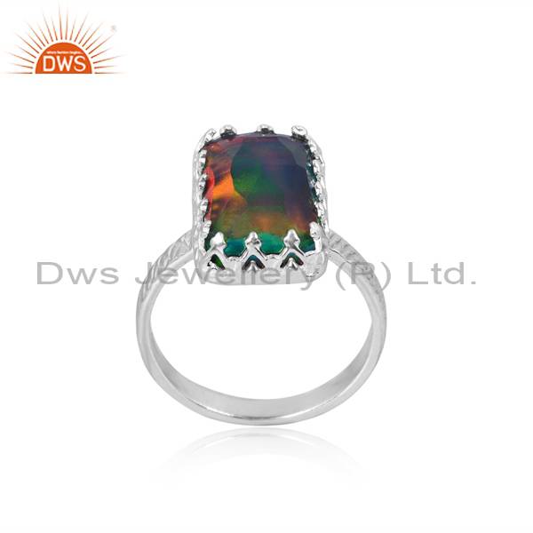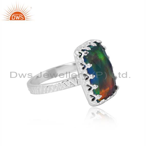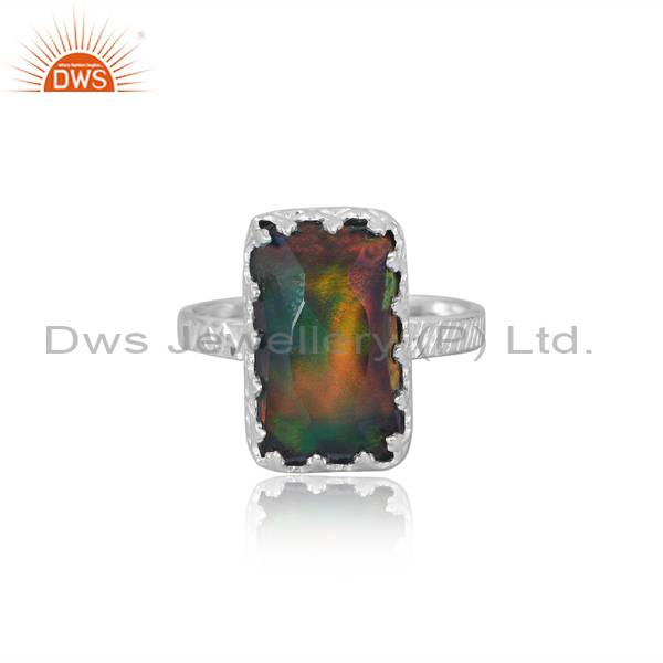 Finger Ring With Unshaped Aurora Opal Red Green For Girls