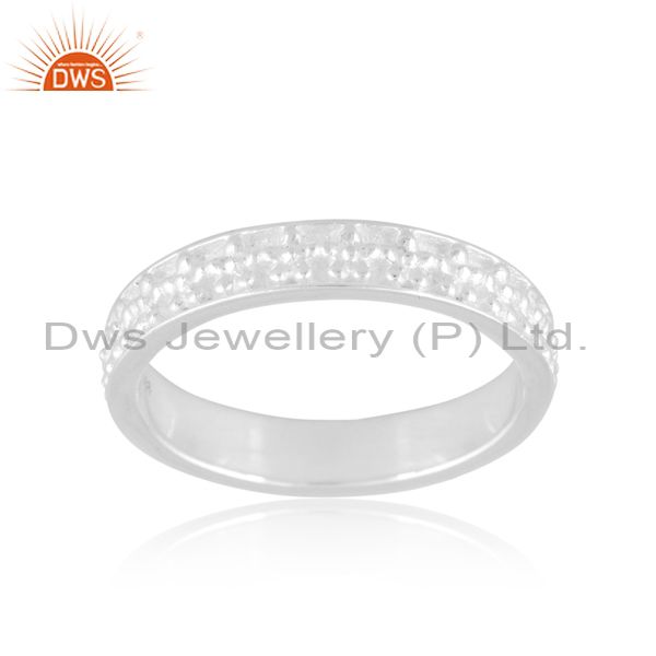 Fixed Sterling Silver Plain White Ring With Carvings