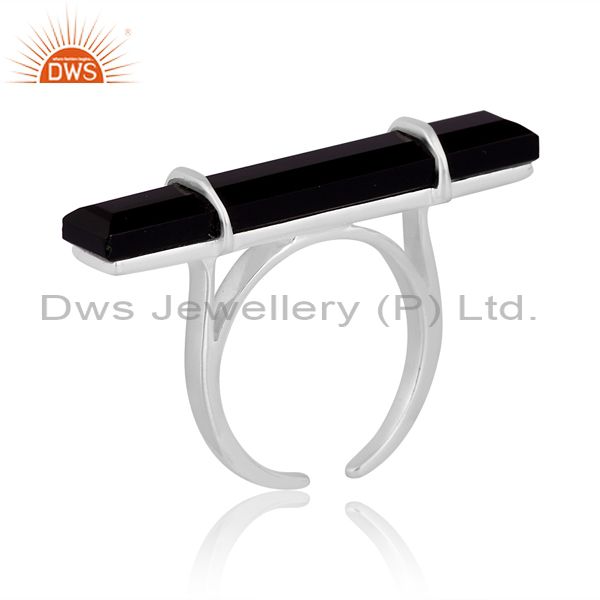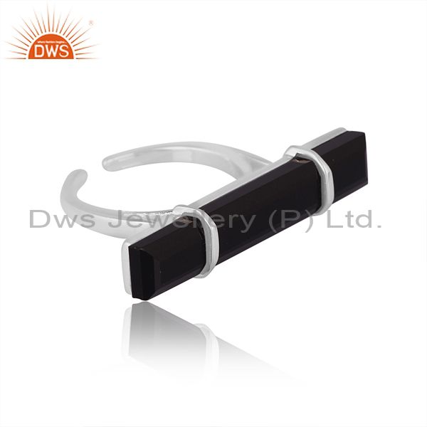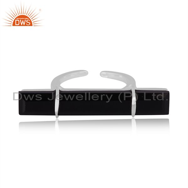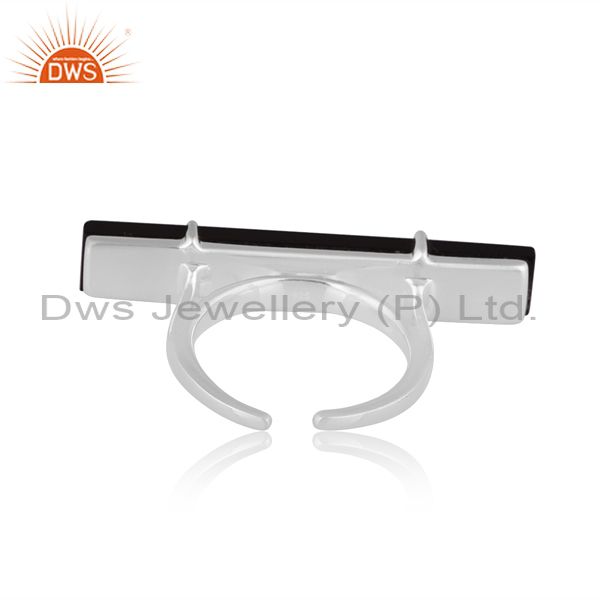 Flat Cut Black Onyx Set Fine Sterling Silver Abstract Ring