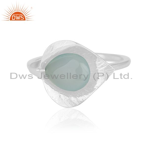 Floral Design Sterling Silver Chalcedony Aqua Gemstone Custom Ring Manufacturer