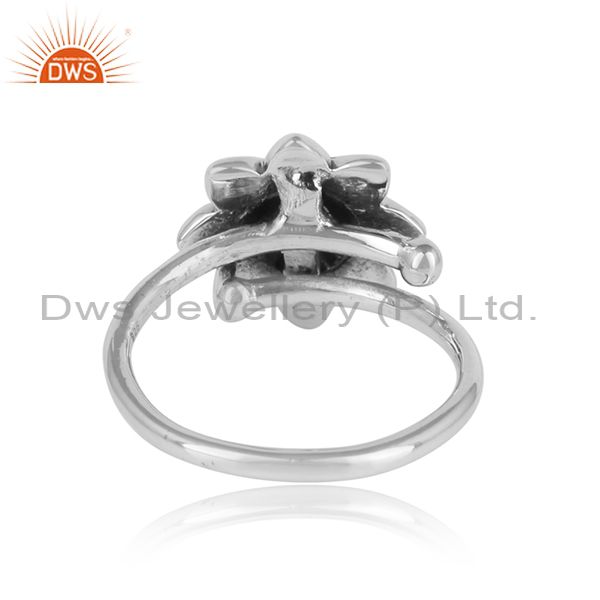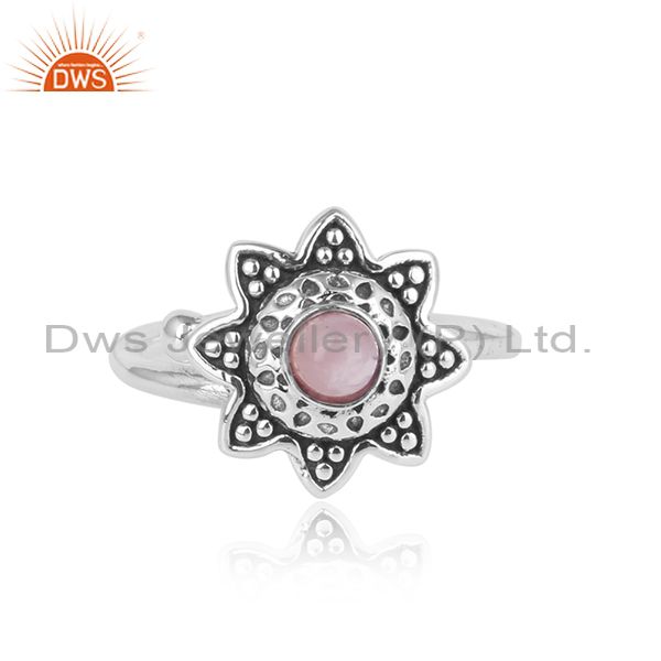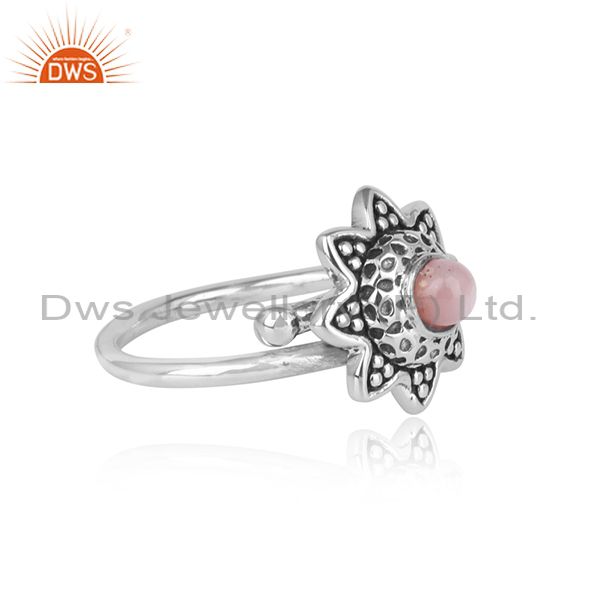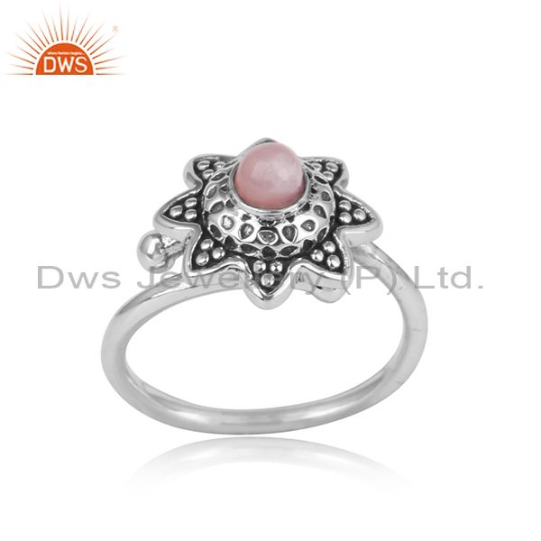 Floral Designer Oxidisez Silver 925 Ring with Pink Opal