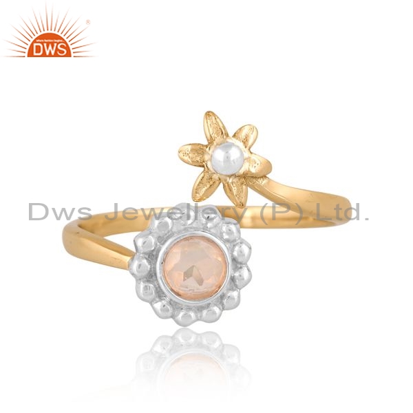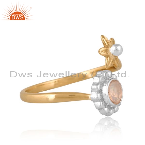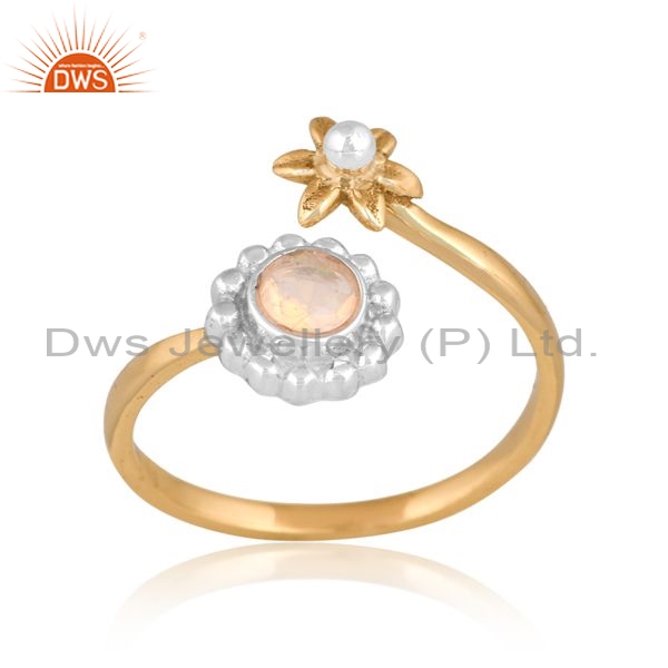 Floral Pattern Brass Ring With Ethiopian Opal Stone