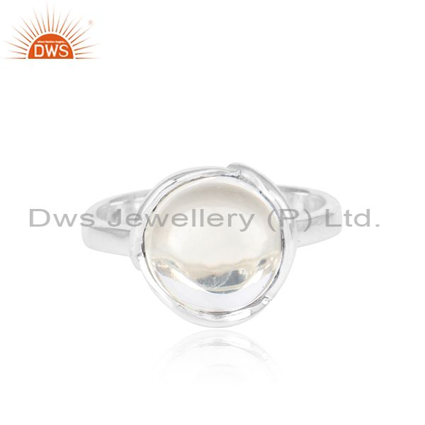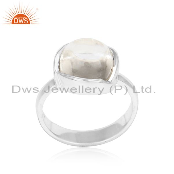 Floral Petal Designer Sterling Silver Crystal Quartz Ring