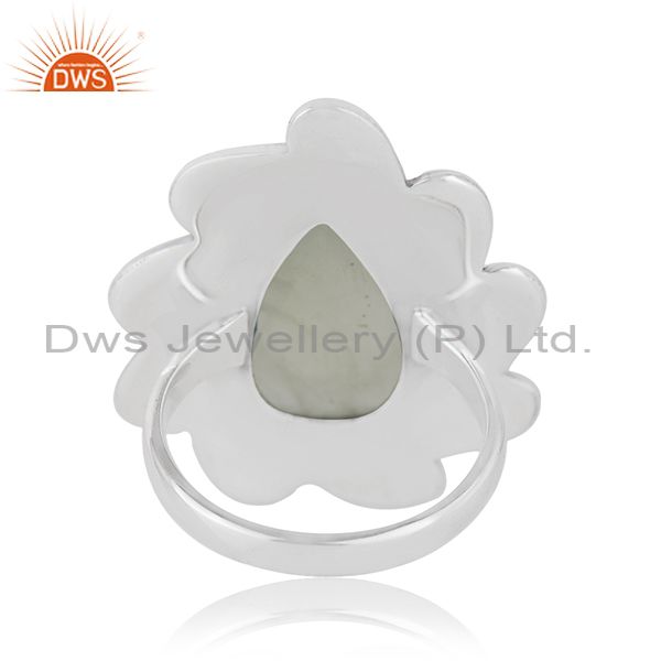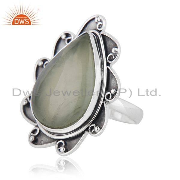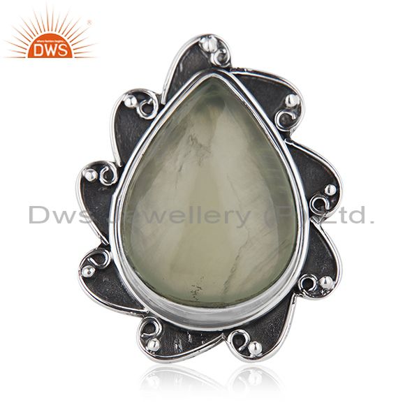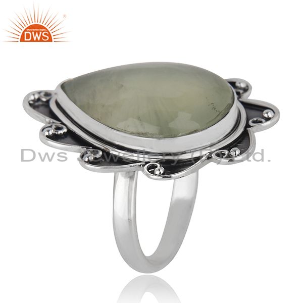 Floral Sterling Silver Oxidized Prehnite Ring Jewelry