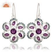 Flower Design London Blue Topaz And Amethyst Ring In Sterling Silver