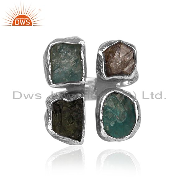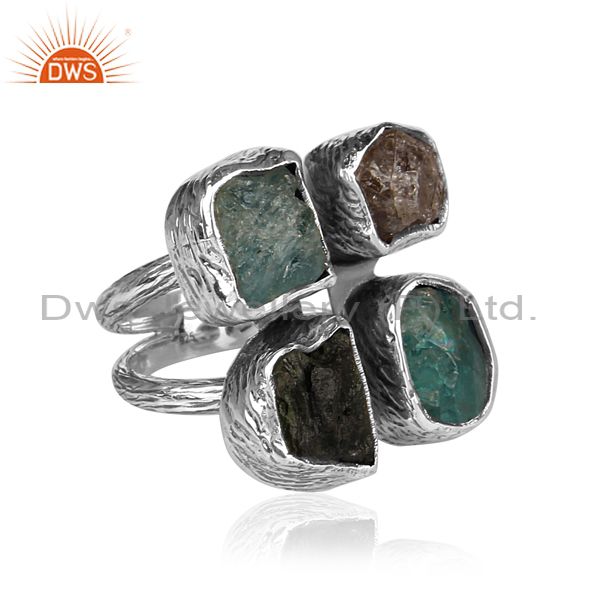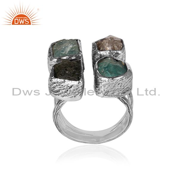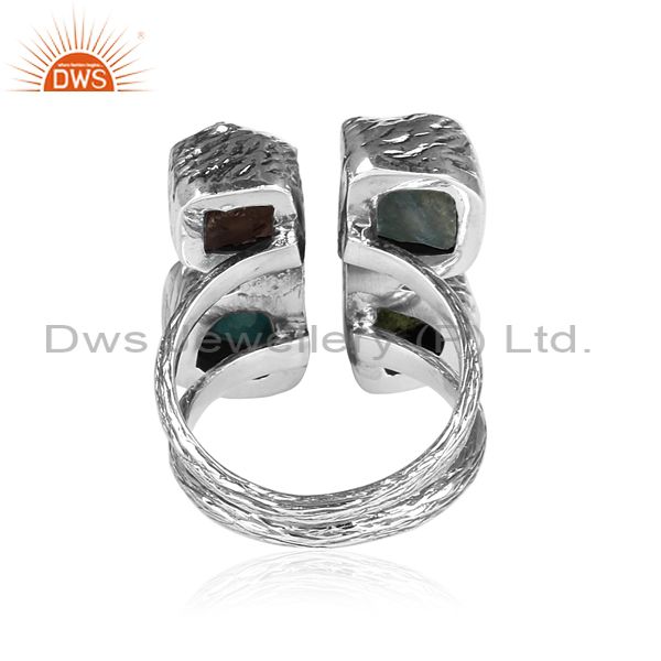 Four Stones Set Oxidized Sterling Silver Classic Band Ring