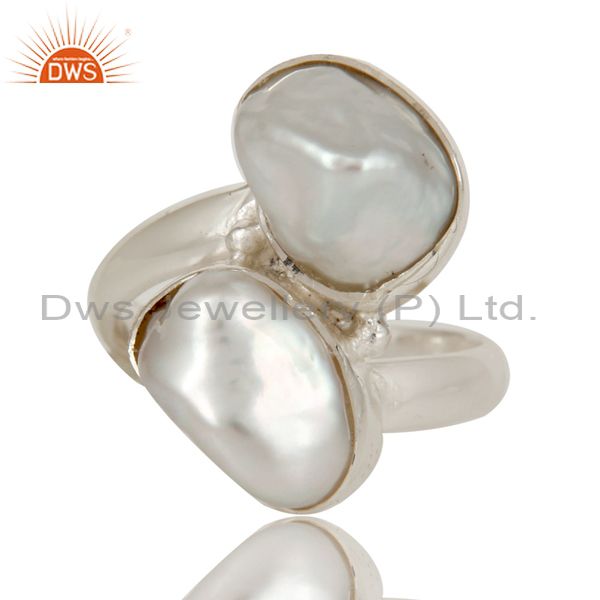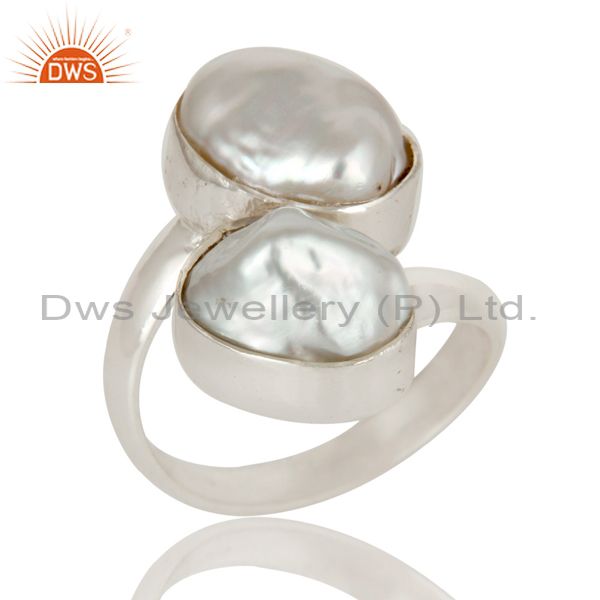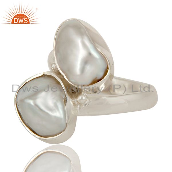 Fresh Water Pearl Solid Sterling Silver Handmade Two Stone Ring