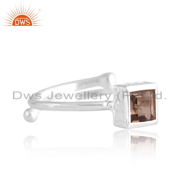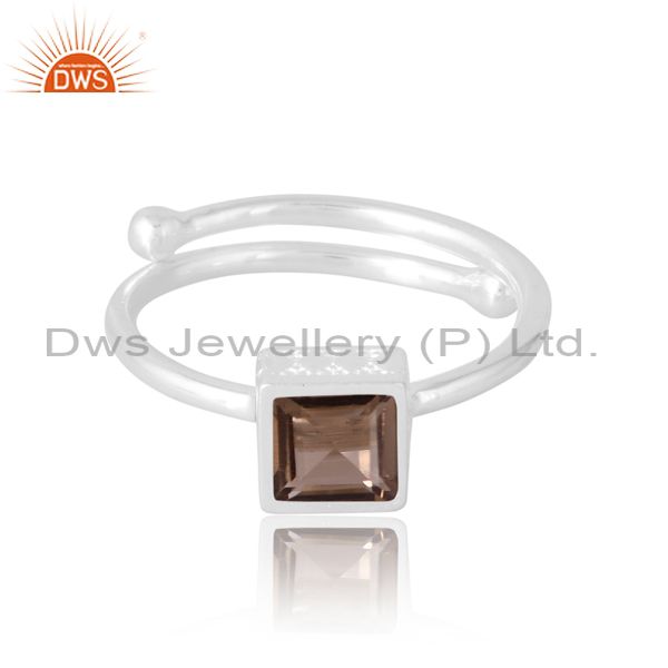 Friendship Day Smoky Cut Square Ring With Adjustability