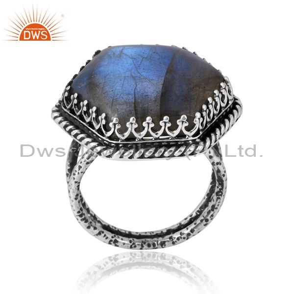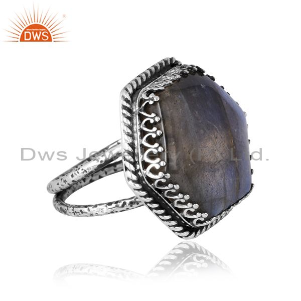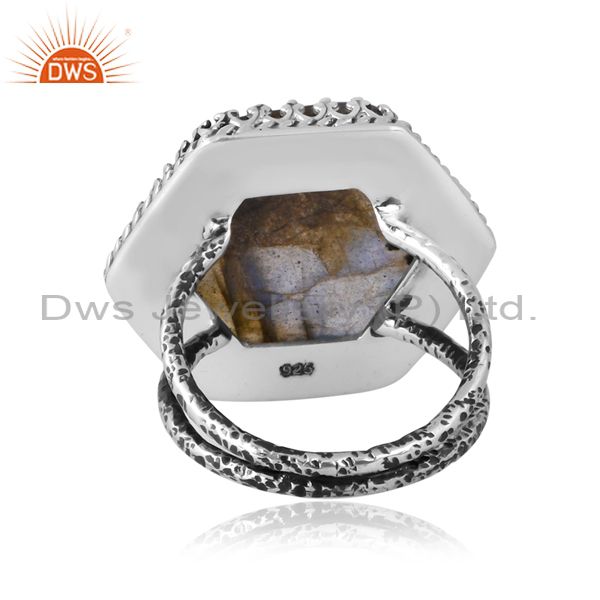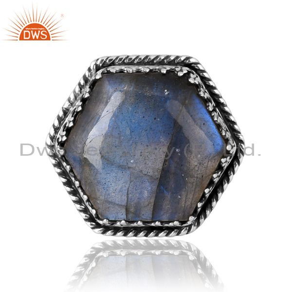 Funky Unisex Ring With Labradorite Stone Hexagon Wire Design