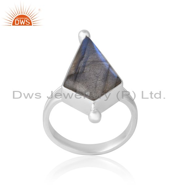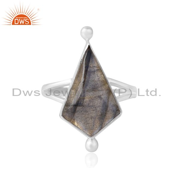 Funky Unisex Ring With Labradorite Stone Kite Dot At Ends