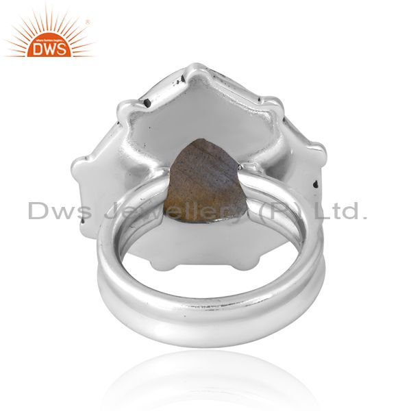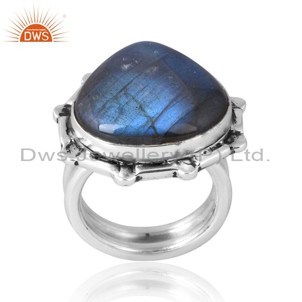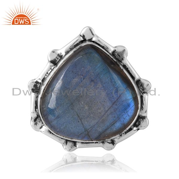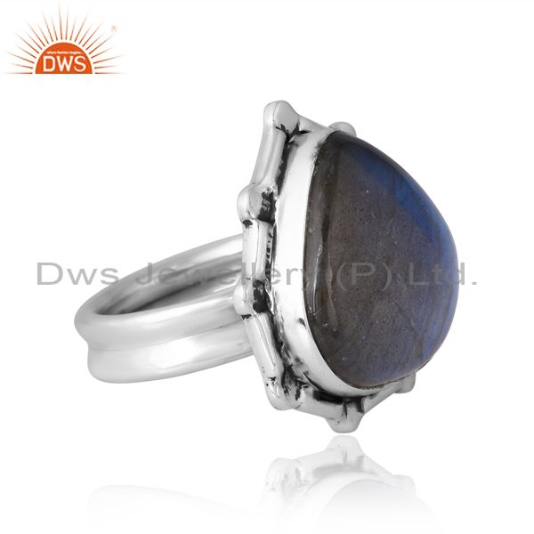 Funky Unisex Ring With Labradorite Stone Pear Wire Design