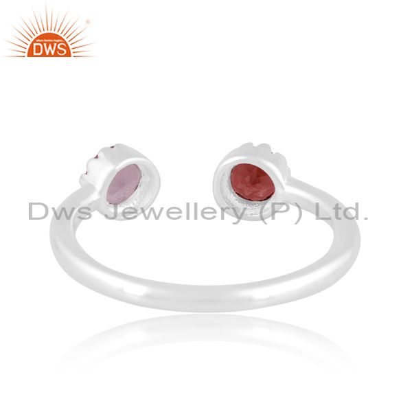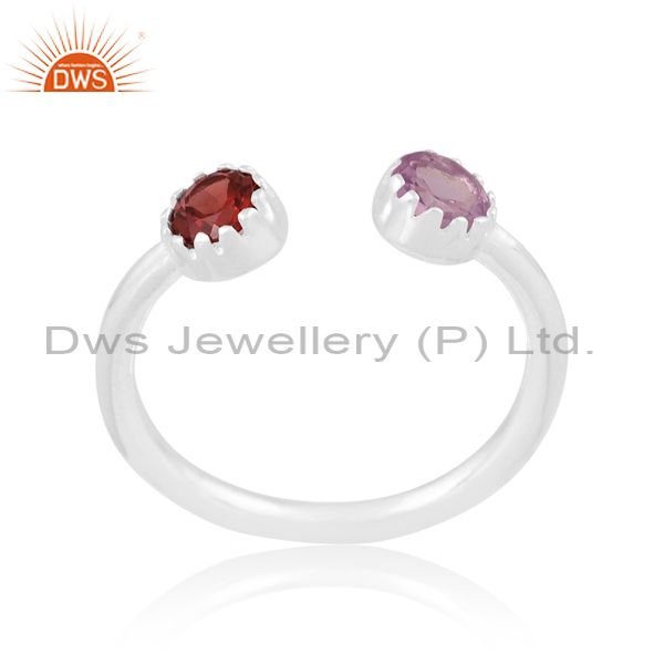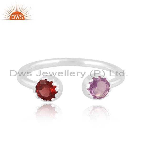 Garnet & Pink Amethyst On White Sterling Silver Ring