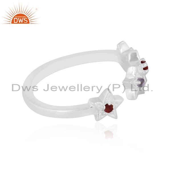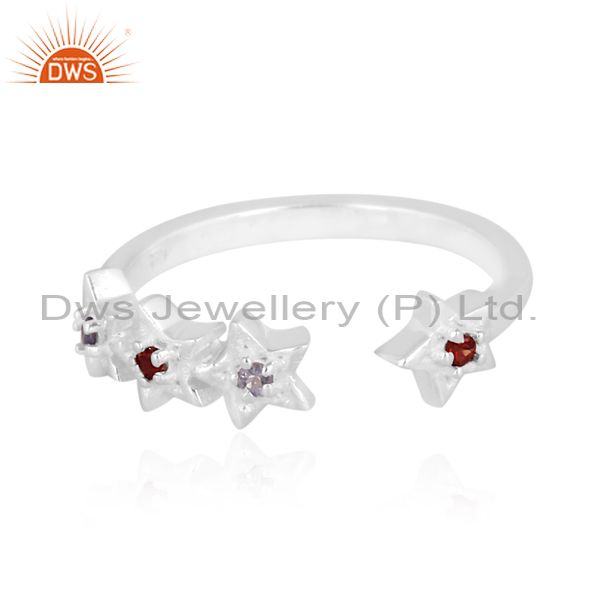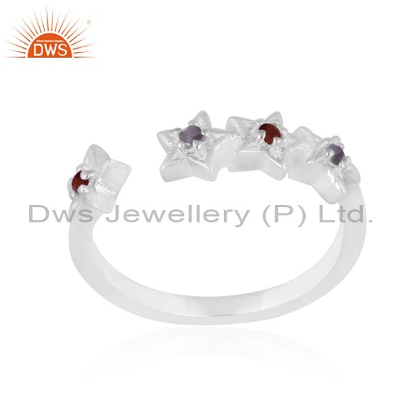 Garnet And Iolite Set Fine Silver Mini Stars Classic Ring