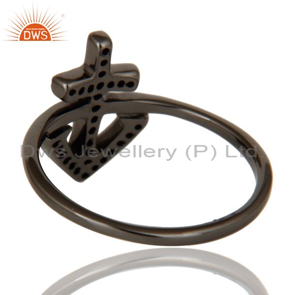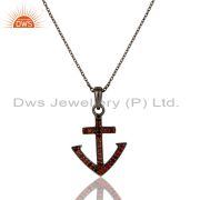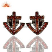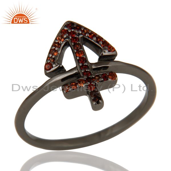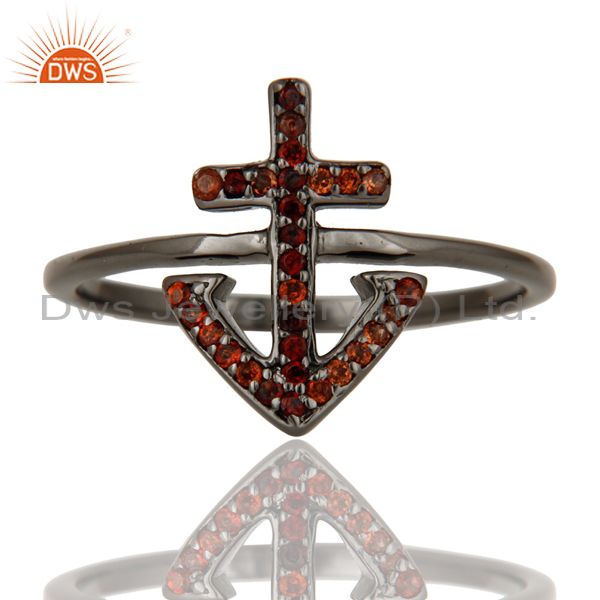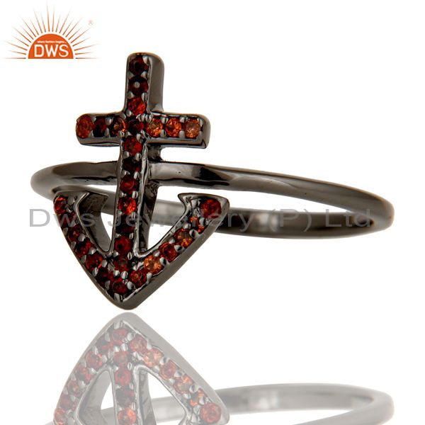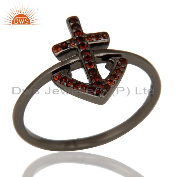 Garnet and Oxidized Sterling Silver Cross Sign Statement Ring