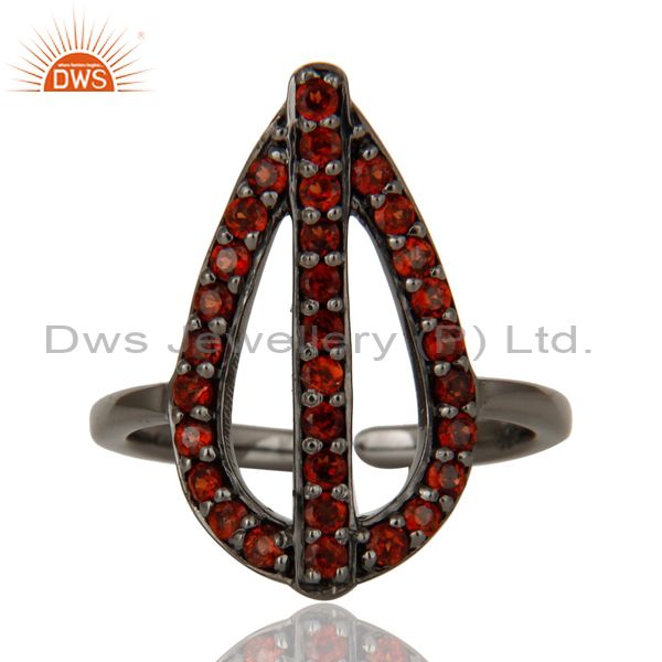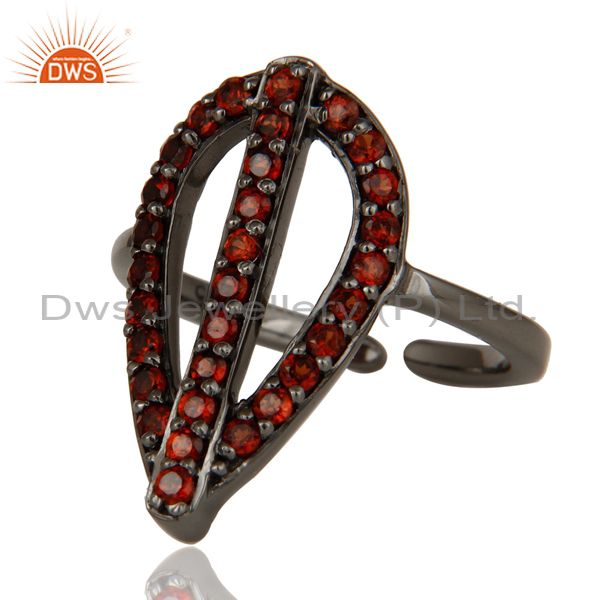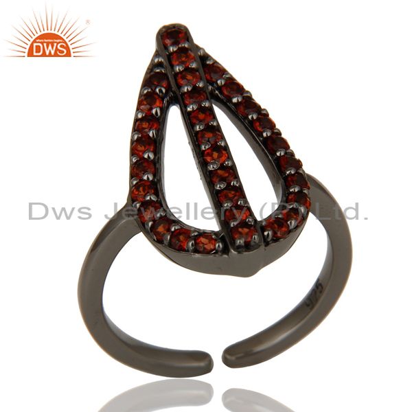 Garnet and Oxidized Sterling Silver Peace Sign Midi Ring