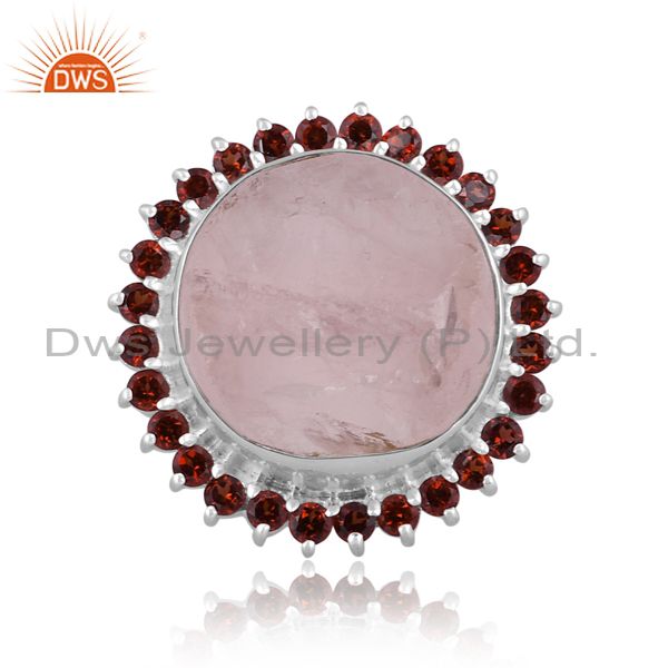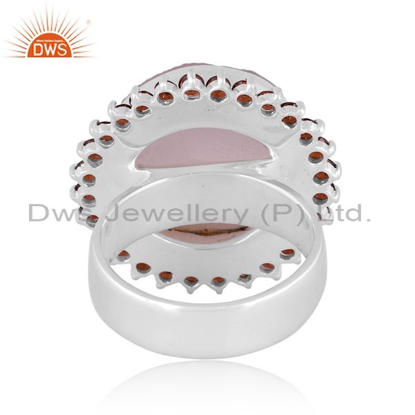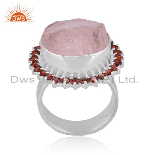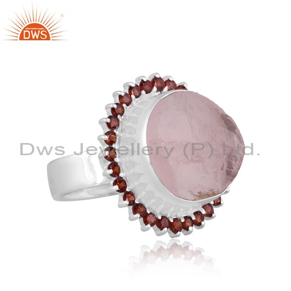 Garnet And Rose Quartz Set Fine 925 Silver Designer Ring