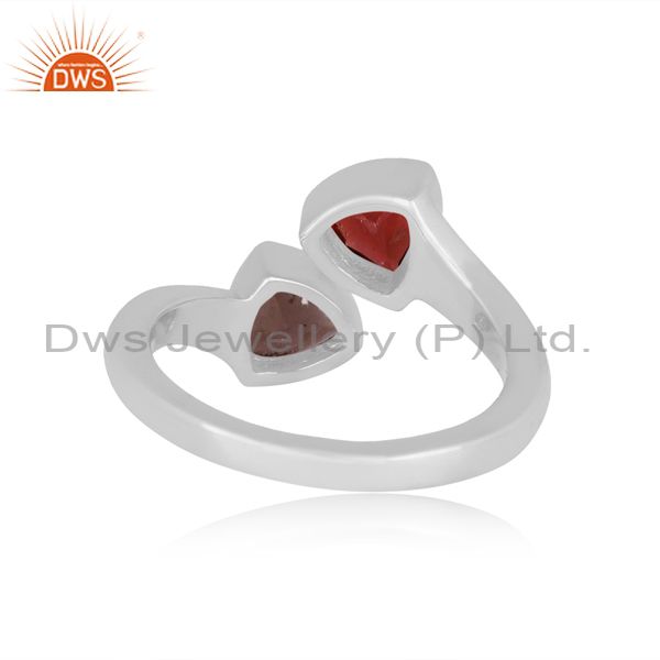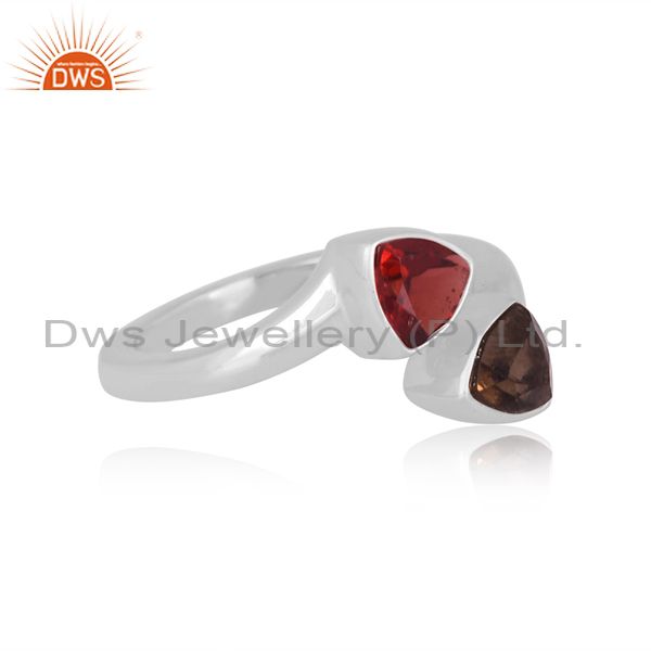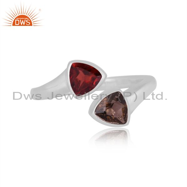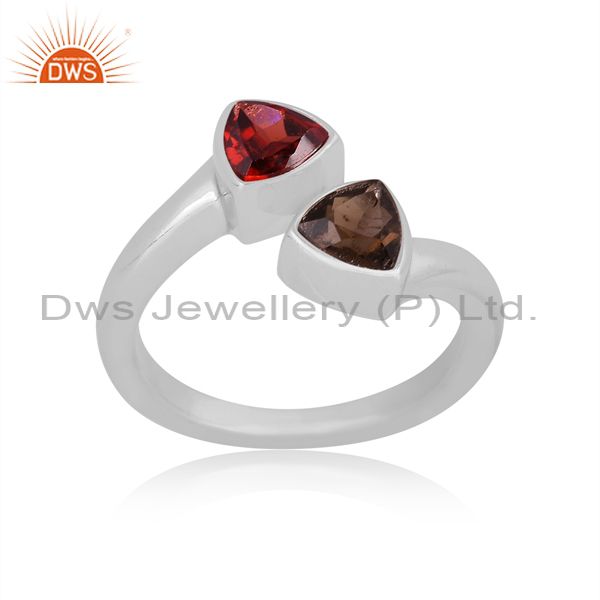Garnet And Smoky Set Fine Sterling Silver Band Style Ring