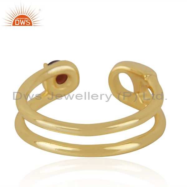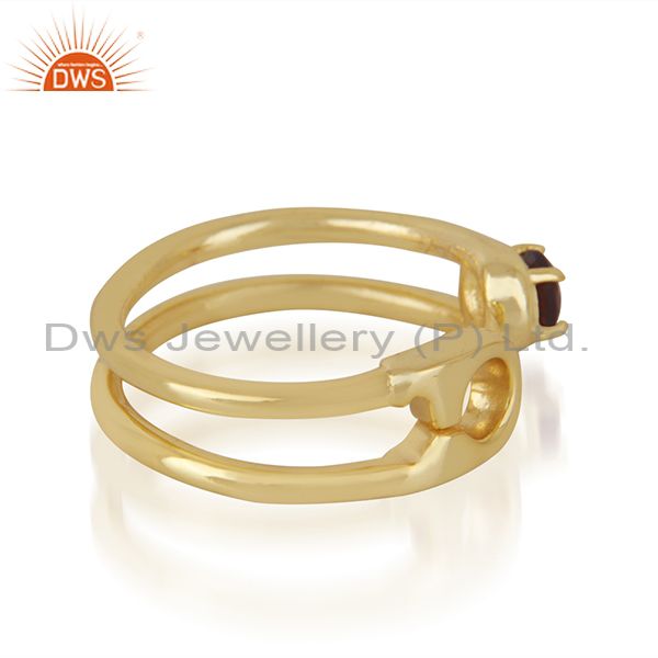 Garnet Gemstone Gold Plated 925 Silver Pin Design Ring Manufacturer India