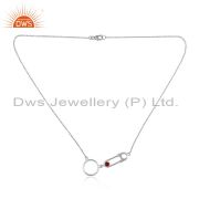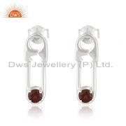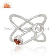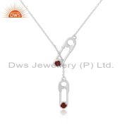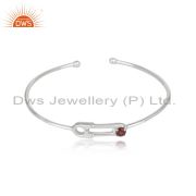 Garnet Gemstone Sterling Fine Silver Safty Pin Shape Ring Jewelry