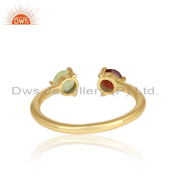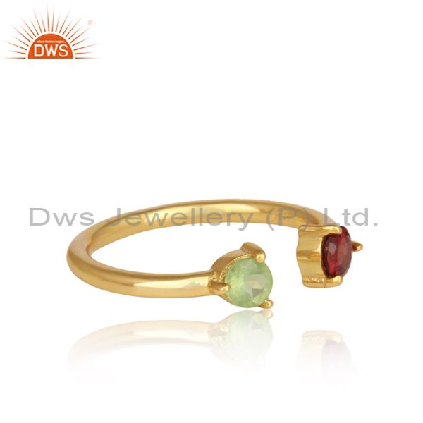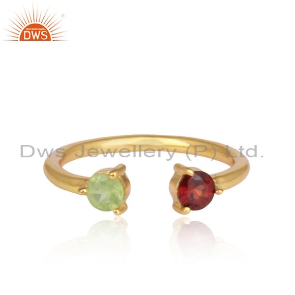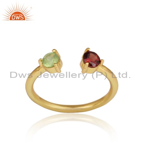 Garnet, Peridot Set Gold On 925 Silver Handmade Facing Ring