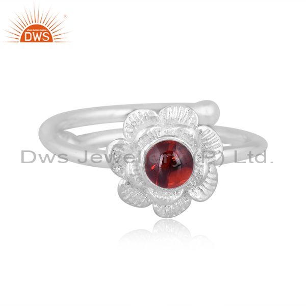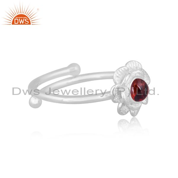 Garnet Set Fine 925 Sterling Silver Handmade Floral Ring