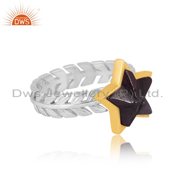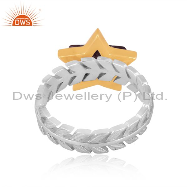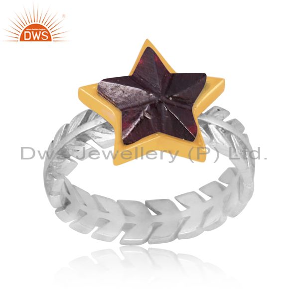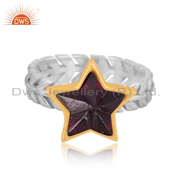 Garnet Set Gold On Fine 925 Silver Star Shaped Fancy Ring