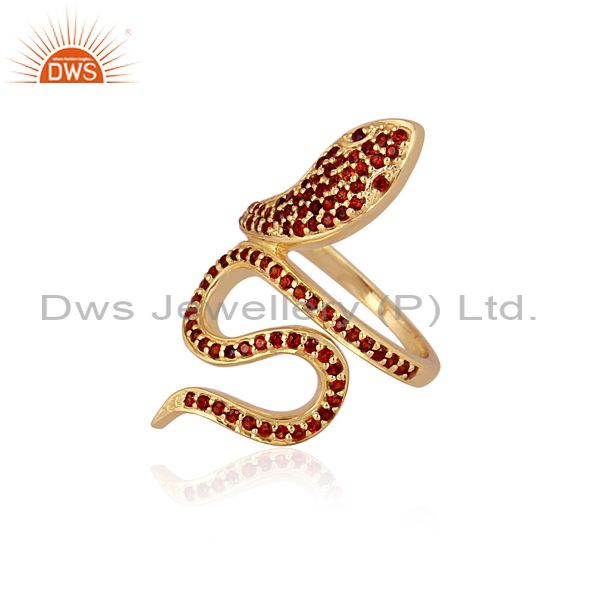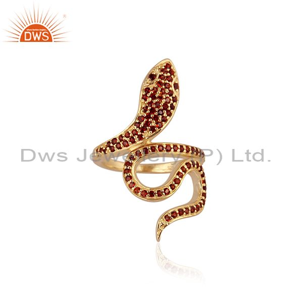 Garnet Set Gold On Sterling Silver Serpentine Designer Ring