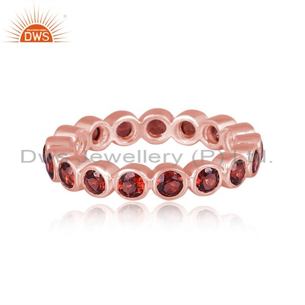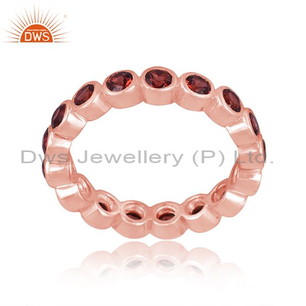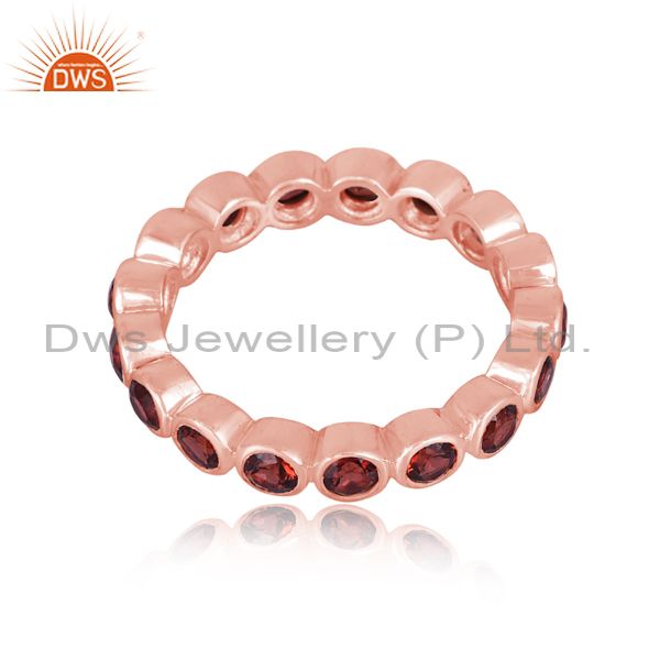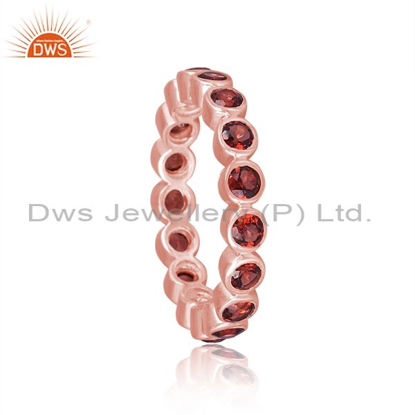 Garnet Set Rose Gold On 925 Silver Band Style Statement Ring